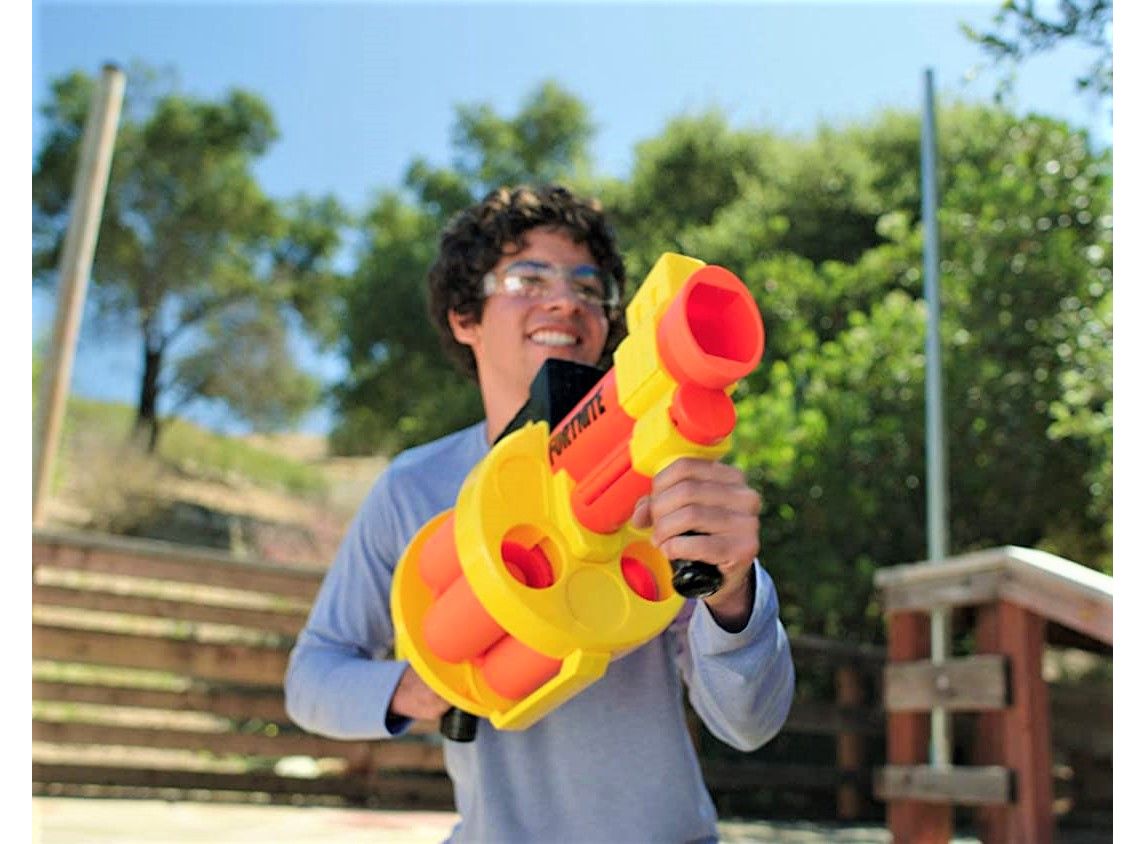 تفنگ Fortnite GL دارای 6 تیر فومی به شکل نارنجک است و برای هر شلیک فقط کافیست که تیرها را داخل خشاب چرخشی آن قرار دهید، دستهی پشتی را نگهداشته و دستهی جلویی را سریع به جلو و سپس به عقب بکشید تا نارنجک پرتاب شود. خشابِ این نارنجکاندازِ غول پیکر نیاز به سرهمبندی دارد و تیرهای آن از جنس فوم با سر پلاستیکی هستند که کاملاً بیخطراند.