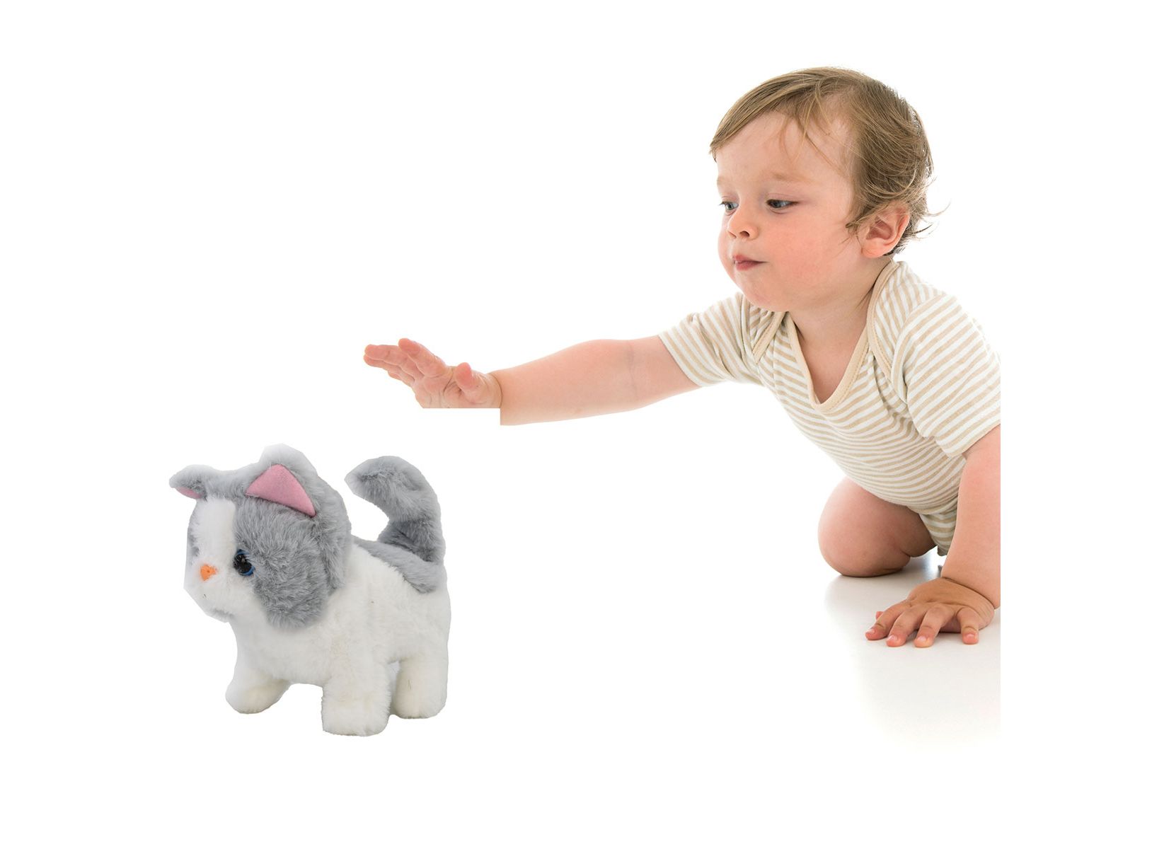 ساشا کوچولو عاشق راه رفتن و در آوردن صداهای بامزه از خودشه، فقط کافیه دکمهی زیر دلش رو روی حالت روشن بذارین تا راه رفتنش رو ببینین. تازه بچه گربهتون دمش رو تکون میده. اون عاشق بازی و وقت گذروندن با شماست و کلی بهش خوش میگذره.