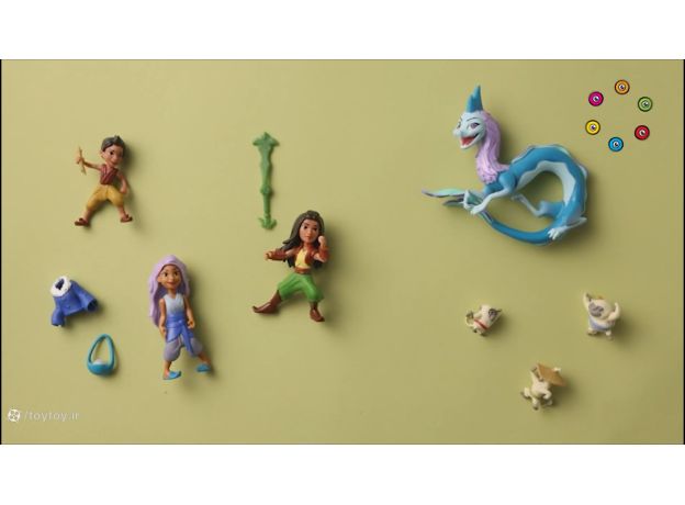 • دارای 7 فیگور از شخصیت‌های انیمیشن Raya and the Last Dragon