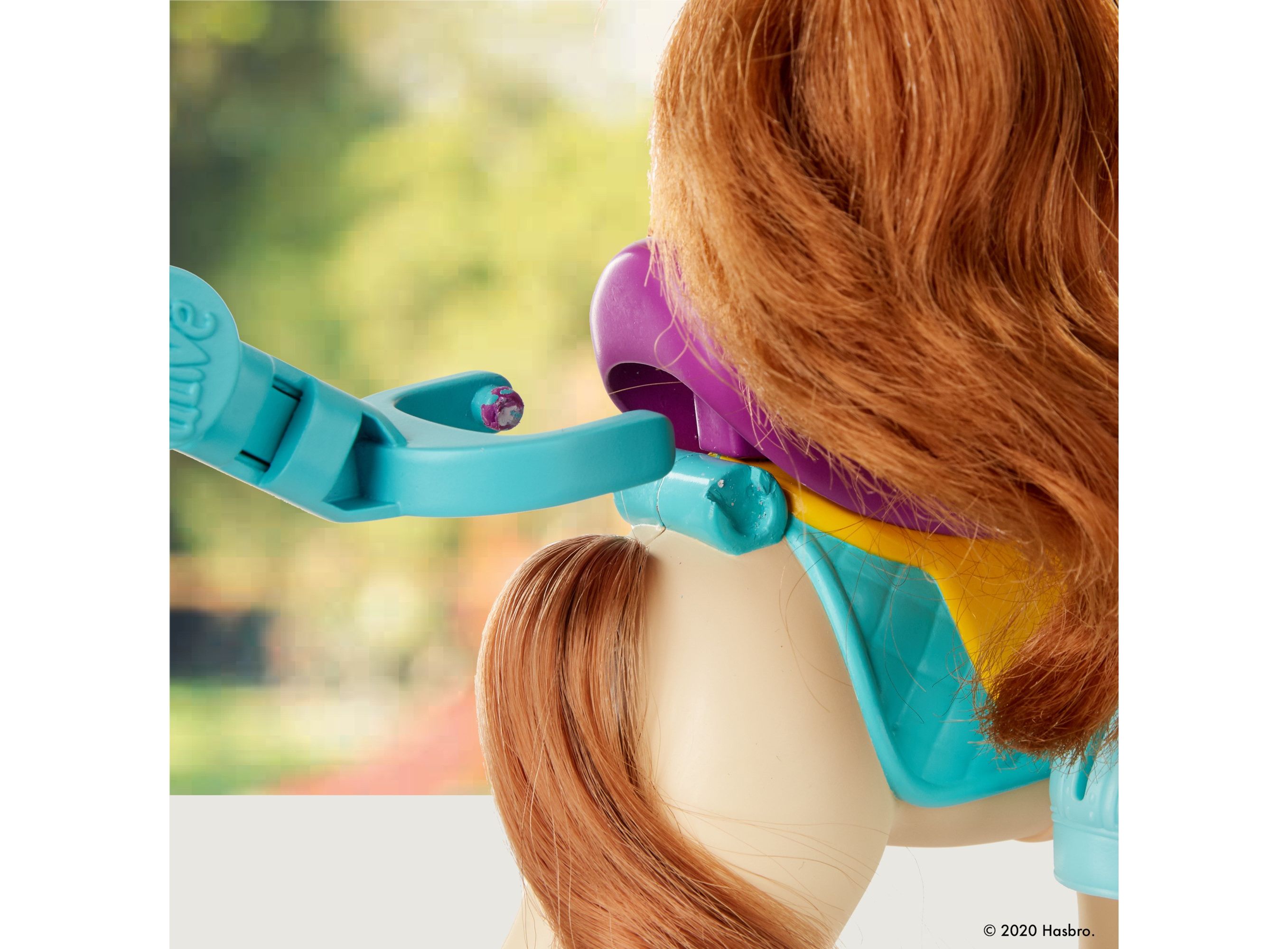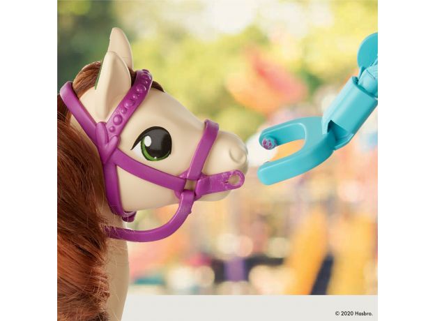 چکمههای مخصوص سوارکاری رو پاش کنید، کلاهش رو سرش کنید و روی اسب کوچولوی خودش بشونیدش. حالا اهرم هدایت رو از جلو به افسار اسب وصل کنید و اونو دنبال خودتون بکشید یا اینکه اهرم رو از پشت به زین وصل کنید و به جلو هولش بدین. عروسک کوچولوتون موقع سوارکاری به جلو و عقب خم میشه و کلی از اینکه با شما به گردش اومده لذت میبره.