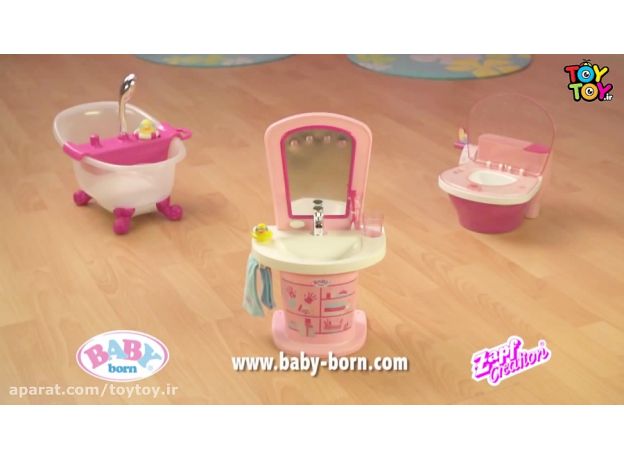 آب در شیر دستشویی پمپاژ میشه و به صورت واقعی کار میکنه. چراغهای دستشویی رو روشن کنید و موقع مسواک زدن دندونای Babyborn، افکت صدای مسواک و قرقره کردن رو بشنوید. همه چیز در این محصول برای شما طبیعی و واقعی جلوه میکنه. این محصول جزء لوازم جانبی عروسک Babyborn محسوب میشه.