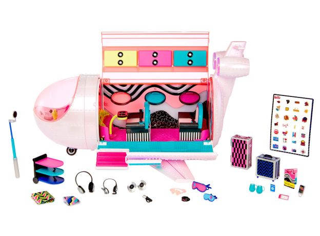 با این هواپیما به سه شکل دیگه هم میتونید بازی کنید؛ یه ماشین برای رفت و آمد بین کنسرتها، یه استودیو ضبط موسیقی و اتاقک میکس آهنگها. این هواپیمای فوقالعاده افکت نوری هم داره که بازی خیالی شما رو واقعیتر میکنه. هواپیماتون چهار تا صندلی برای مسافرها و یه صندلی برای خلبان داره. در پروازهای طولانی، وقتی هم که شب میشه صندلیها رو به حالت خوابیده در بیارید تا عروسکاتون در طول سفر استراحت کنن. داخل این ست بازی 50 تا سورپرایز هیجانانگیزه که شامل دو میکروفون، دو هدست، دو پتوی کوچیک، پاسپورت و کلی سورپرایز شگفت انگیز دیگه میشه!