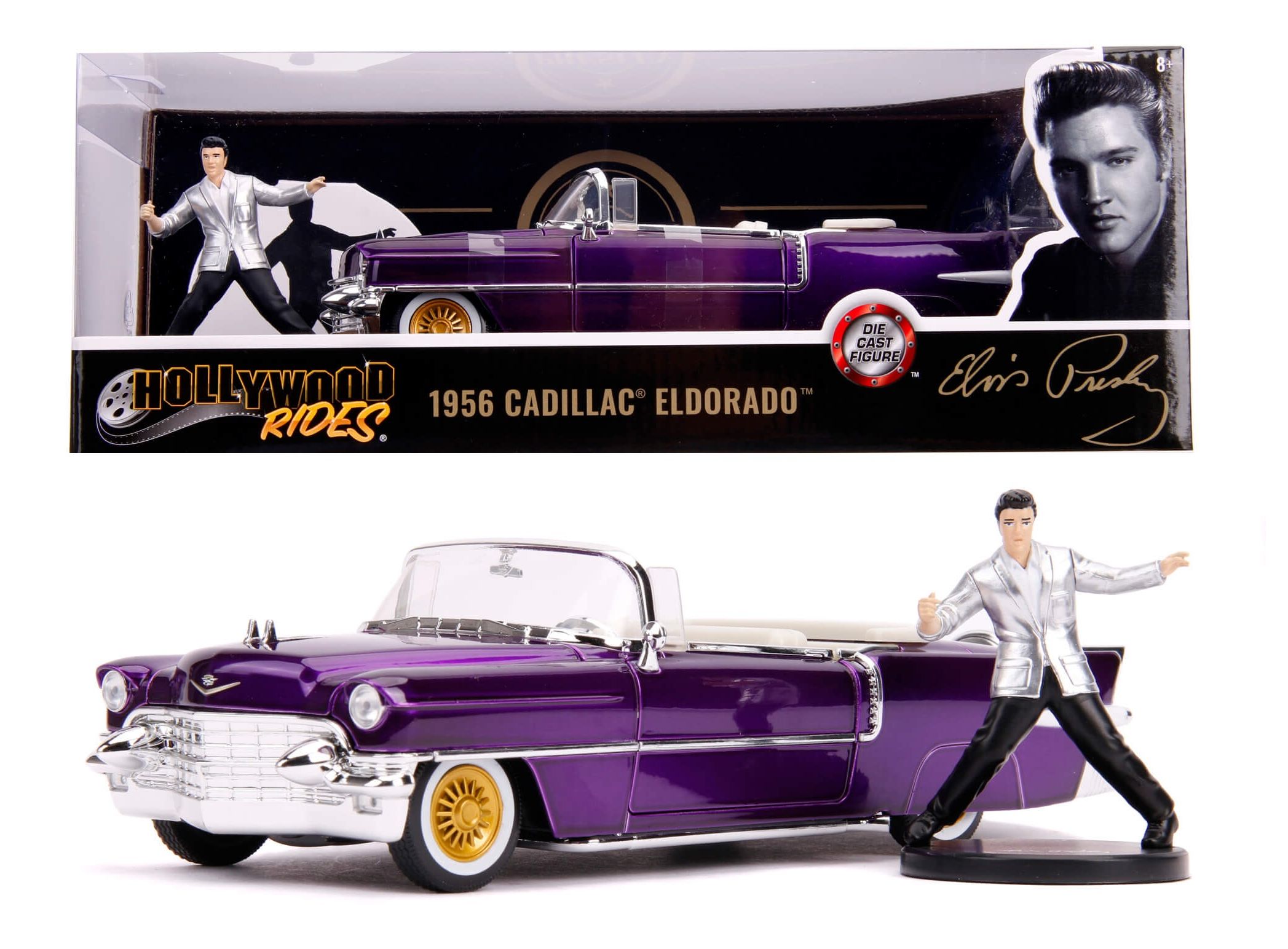 ماشین کادیلاک مدل الدورادو 1956 و فیگور فلزی الویس پریسلی با مقیاس 1:24