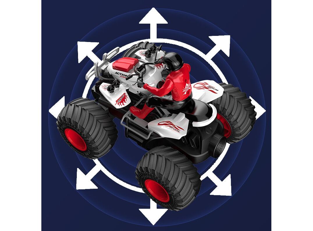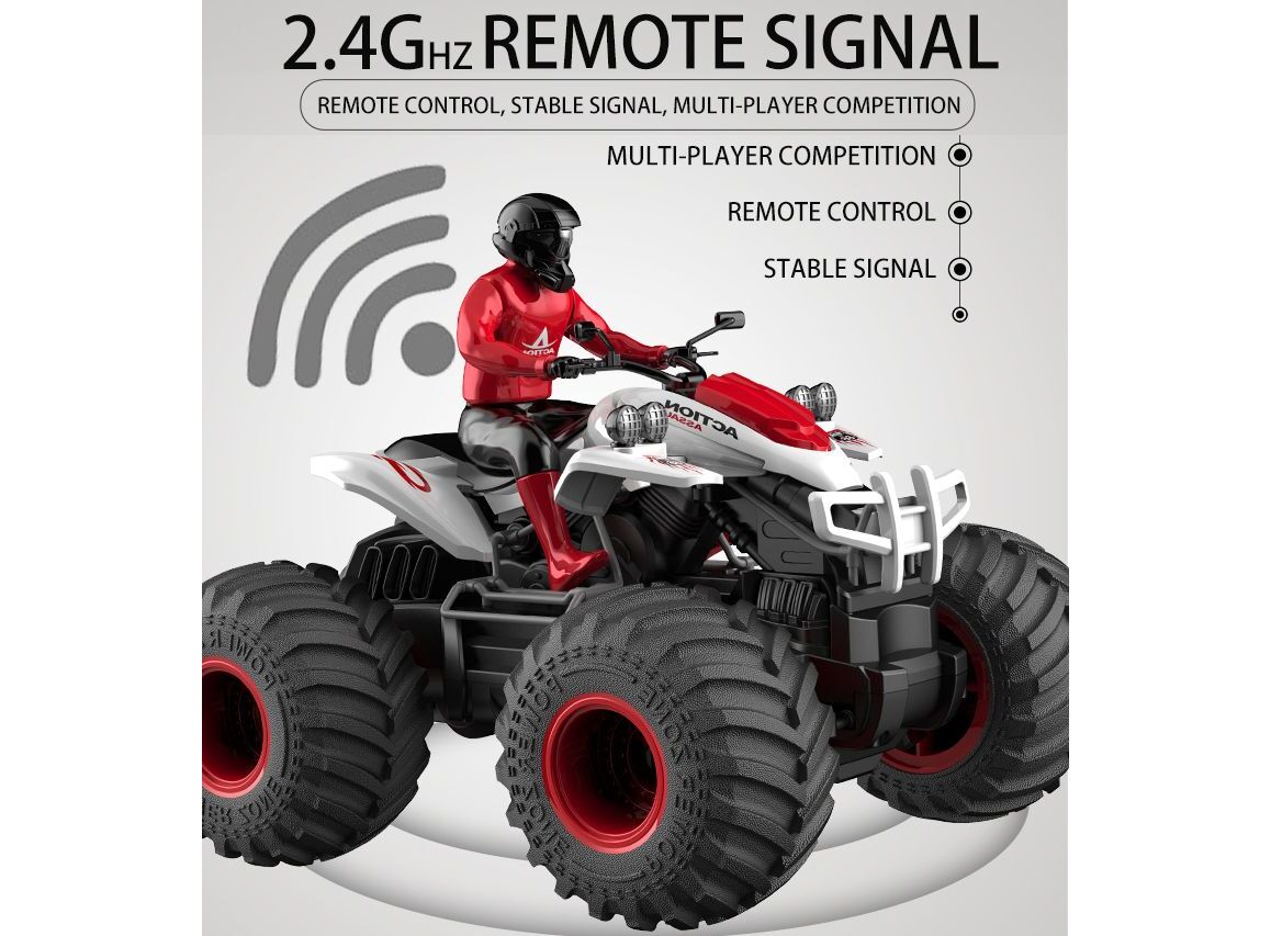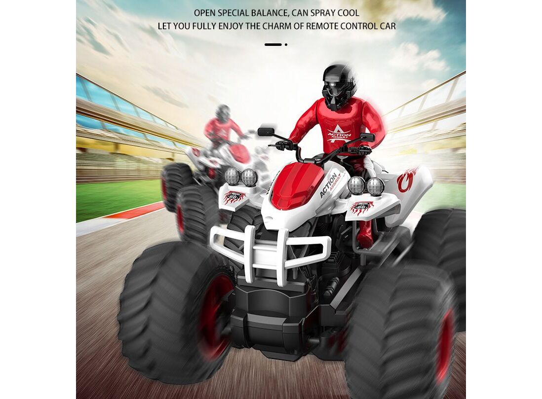 طراحی خاص این موتور برای تمام سنین جذاب و دوستداشتنیه و شما میتونید اون رو هم داخل خونه و هم در سطوح مختلف استفاده کنید. موتور چهارچرخ دارای یک ریموت کنترل 4 کاناله هست که قابلیت حرکت به جهتهای مختلف و حتی چرخش 360 درجه رو داره که با استفاده از اون میتونید حرکات نمایشی جذابی رو اجرا کنید. به کمک چرخهای بزرگی هم که روی موتور کار شده شما میتونید از هر مانعی عبور کنید. راستی این موتور بینظیر قابلیت تولید دود هم داره که شما میتونید تجربهی سواری یک موتور واقعی رو توی دنیای خیالیتون داشته باشید.